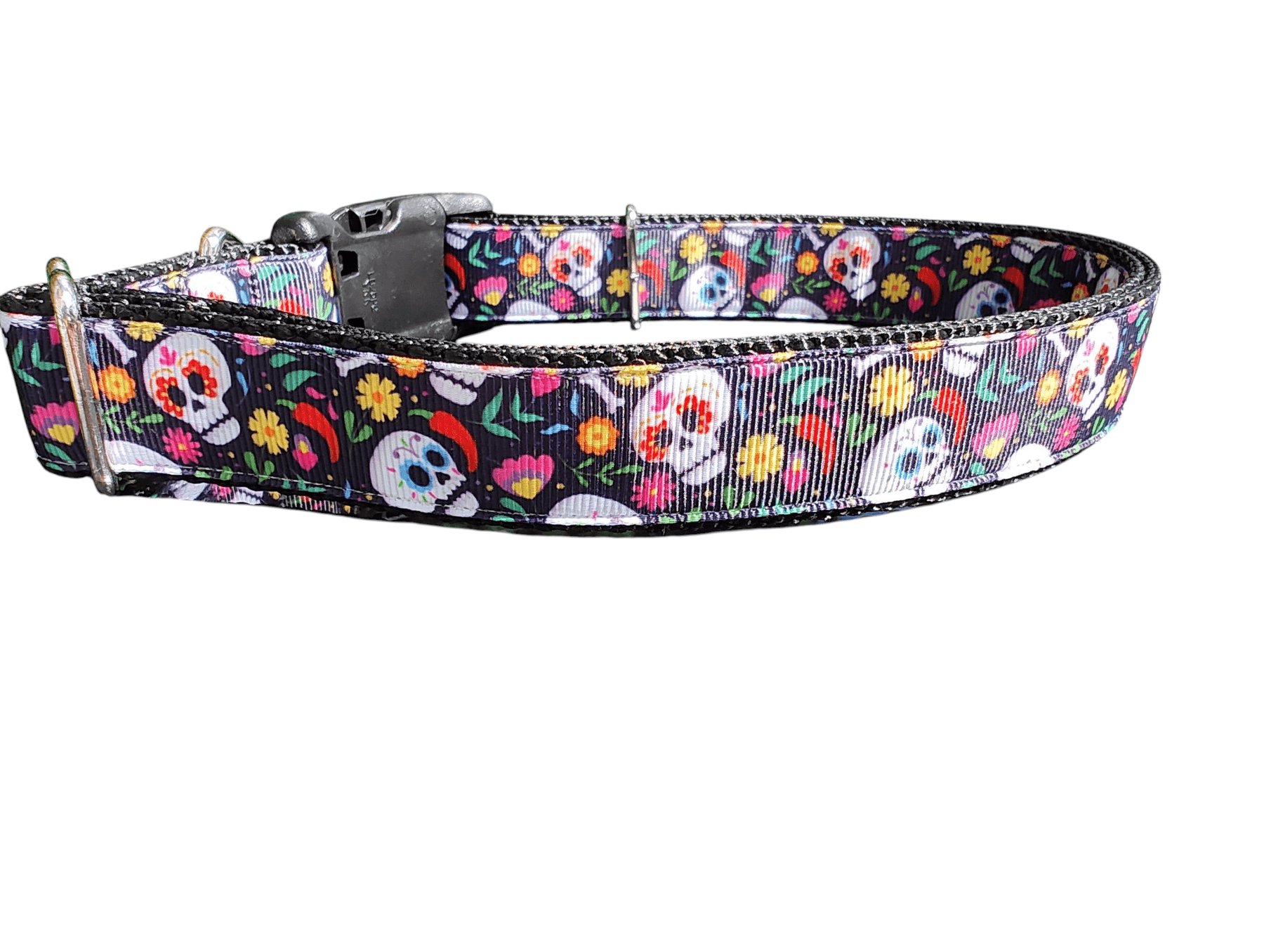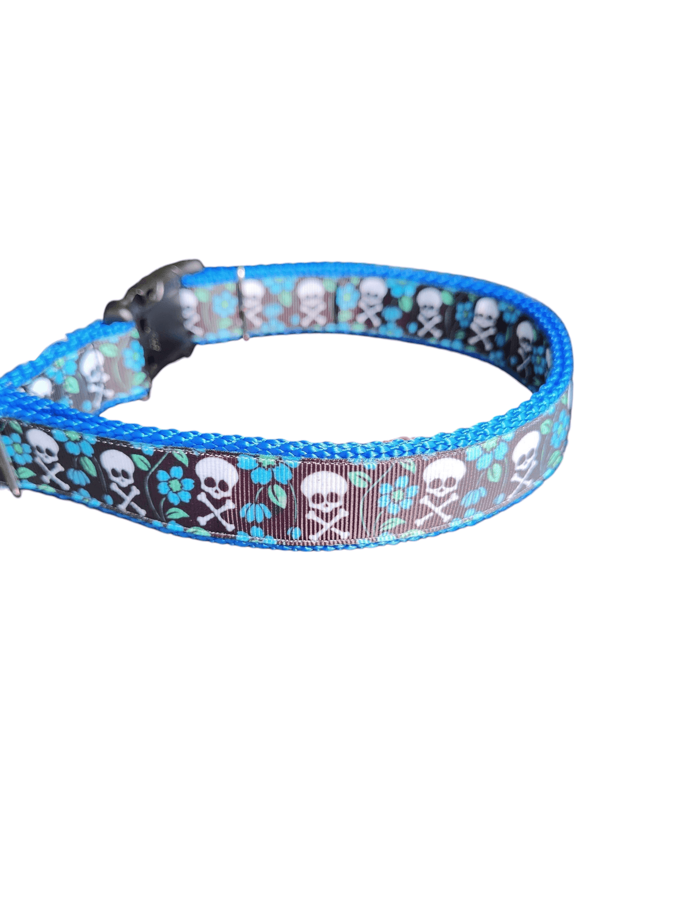 If you're searching for a dog collar that's as tough as your pup's adventures and packs a punch of personality, the Skull and Crossbones Blue Flowers Nylon Dog Collar is your perfect match. Handcrafted in the USA, this collar blends edgy skull motifs with vibrant blue flowers on sturdy nylon webbing, creating a standout accessory that turns every walk into a style statement. Ideal for active dogs who love exploring trails or city streets, it offers unmatched durability to handle pulls, tugs, and playful escapades without giving way.