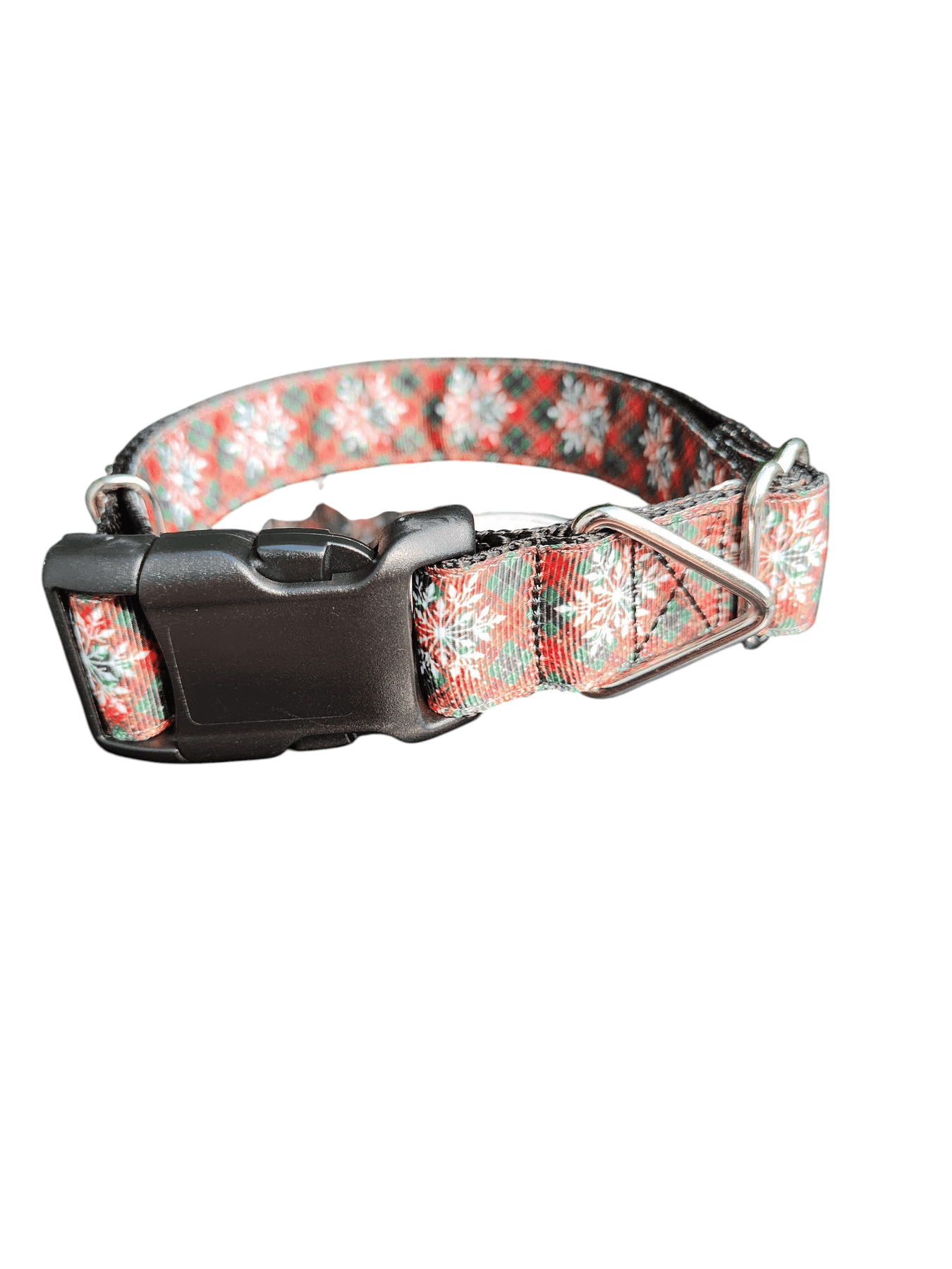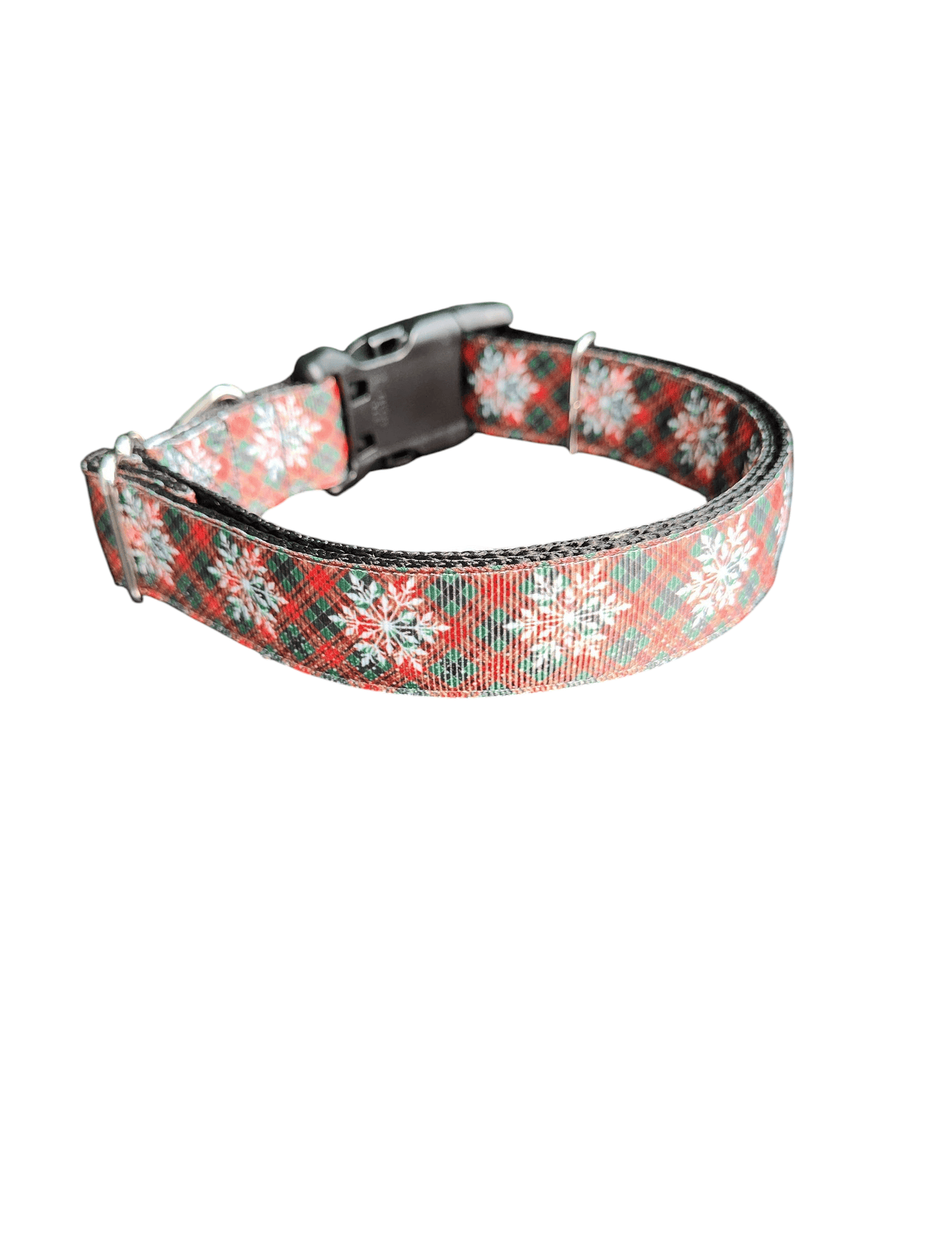 Imagine your furry friend strutting through snowy trails or holiday gatherings in a collar that combines rugged durability with festive flair—the Snowflake Tartan Plaid Nylon Dog Collar. Handcrafted in the USA from tough 1-inch heavy nylon webbing, this collar boasts an impressive 4,200 lb strength (or upgrade to super heavy at 6,100 lb), making it ideal for energetic pups who love to pull on walks or play rough. The eye-catching tartan plaid pattern, inspired by classic winter motifs, adds a touch of unique style that sets it apart from ordinary collars, turning everyday outings into stylish adventures.