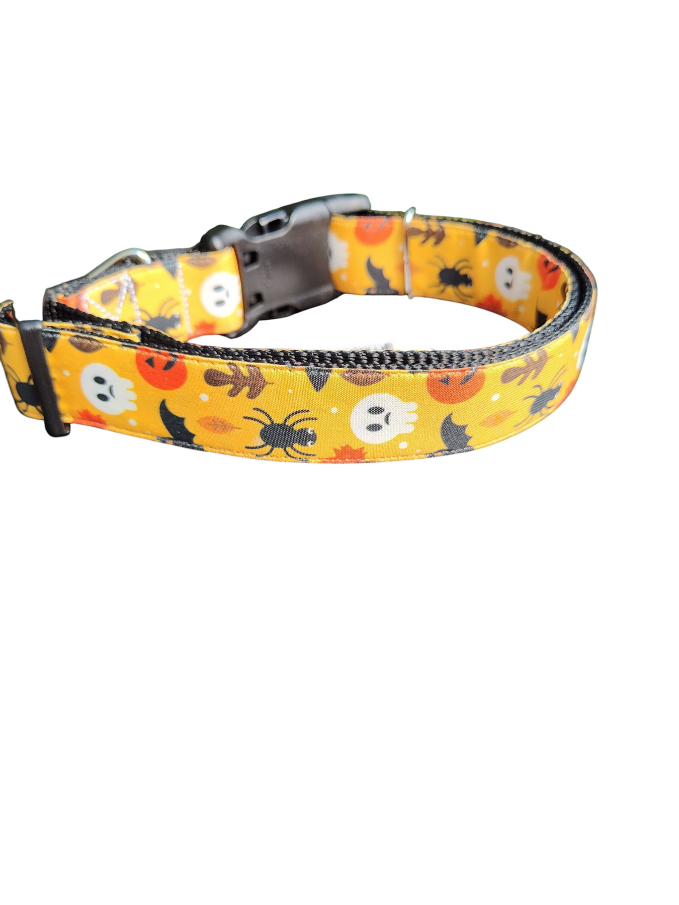 Imagine your furry companion strutting with a touch of rugged western flair—enter the Western Bull Skull Nylon Dog Collar, a handmade masterpiece crafted right here in the USA. This isn't just any dog collar; it's built for dogs that live boldly, with a design that blends eye-catching bull skull motifs into a tough, reliable everyday essential. Made from premium 1-inch heavy nylon webbing that boasts an impressive 4,200-pound strength (or upgrade to super heavy at 6,100 pounds), this collar is engineered to withstand pulls, tugs, and adventures without giving way.
