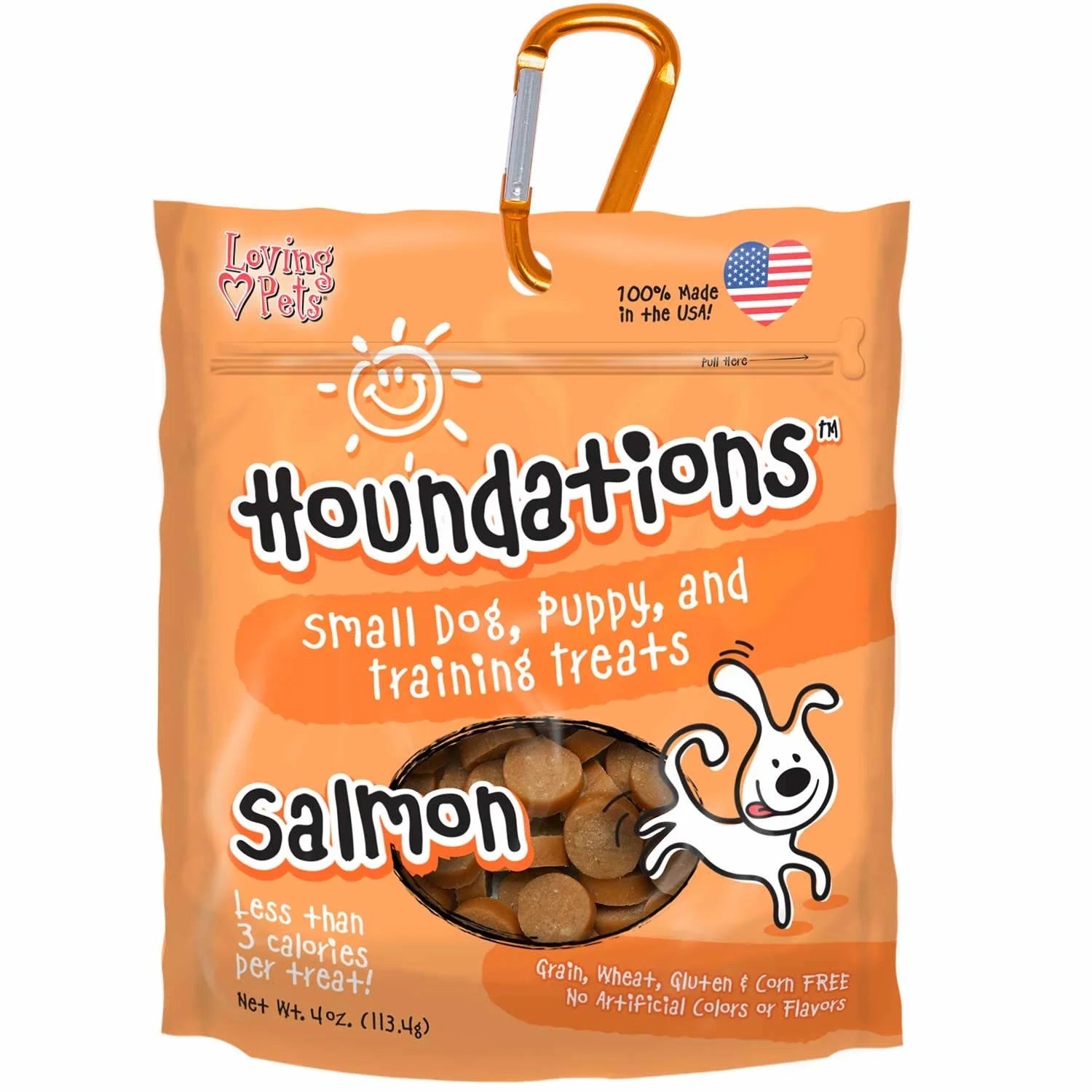 Houndations™ bite-size, soft-chew dog treats are for small dogs and little learners. Houndations is the PERFECT training treat for any size dog, and is also great everyday treat for small dogs and puppies. Made from 100% All-Natural ingredients – grain, wheat, gluten and corn free, Houndations is available in 5 delicious varieties. FREE carabiner with EVERY bag! Makes it easy to go hands-free when training, hiking or playing. Conveniently hang the bag from your belt loop, purse, or leash.