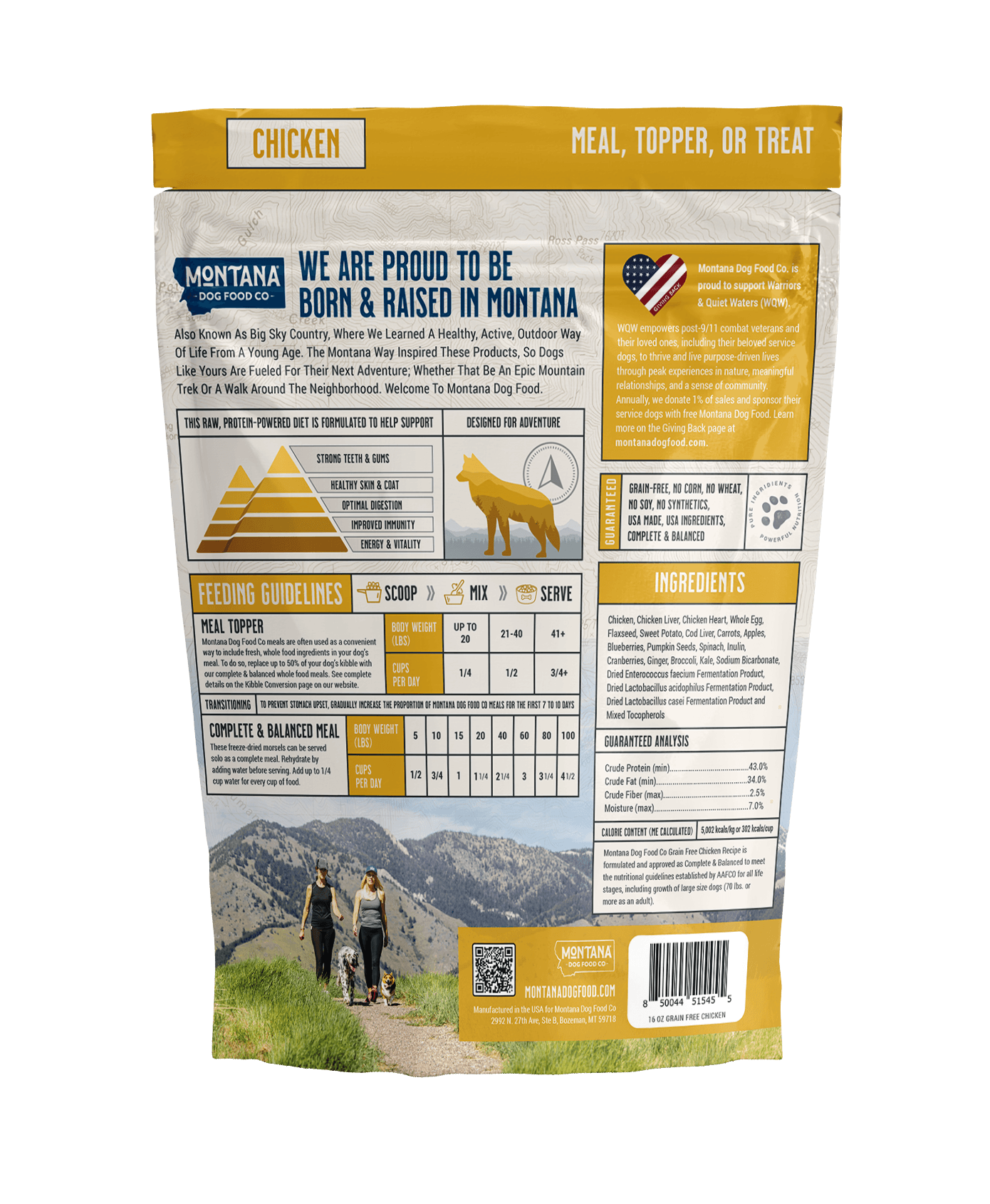 Imagine fueling your dog's inner adventurer with a meal that's as wild and free as their spirit—our Grain-Free Chicken Freeze-Dried Raw Adventure Fuel. Crafted from premium free-range chicken, this raw dog food blends nutrient-dense fruits, vegetables, and essential vitamins into every bite, ensuring your pup gets the real, unprocessed goodness they crave. Unlike conventional kibble that loses vital nutrients during high-heat processing, our freeze-dried method locks in the fresh taste and bioavailable proteins, making it a standout choice for discerning pet parents who prioritize their dog's health and energy levels.